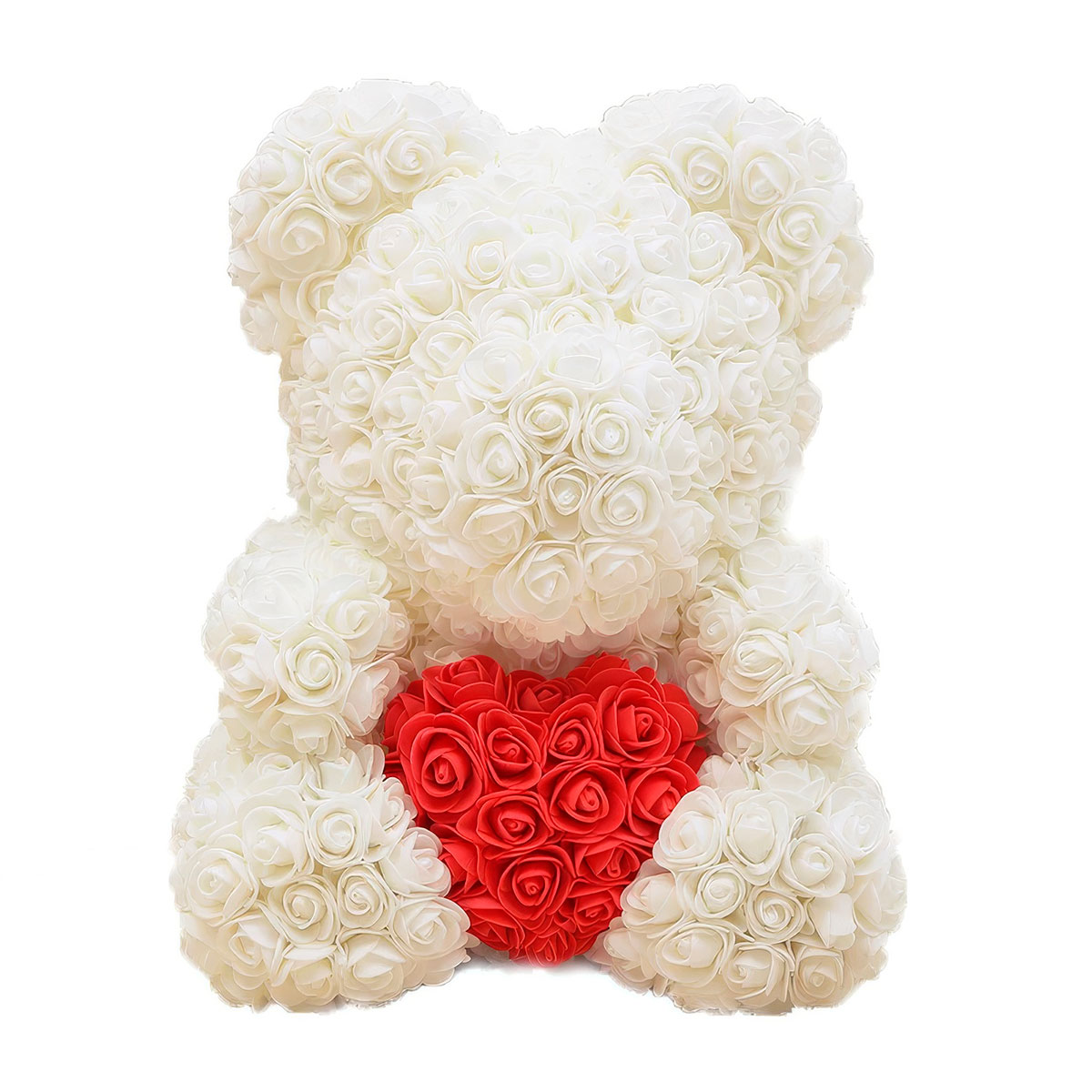 Мишка из роз бежевый с красным сердцем (40 см) с доставкой по г Березовский (Свердловская обл): вы можете заказать подарок в интернет магазине «Флормания» по цене за 5990 руб.