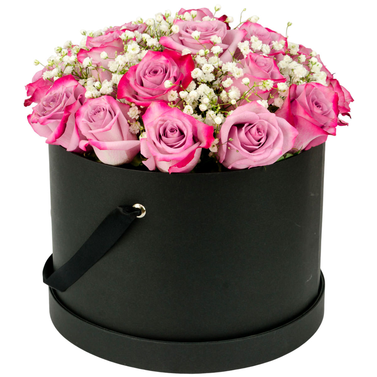 Роза одноголовая розовая, гипсофила. Упаковка (шляпная коробка, квадратный бокс, коробка сердце, оазис)