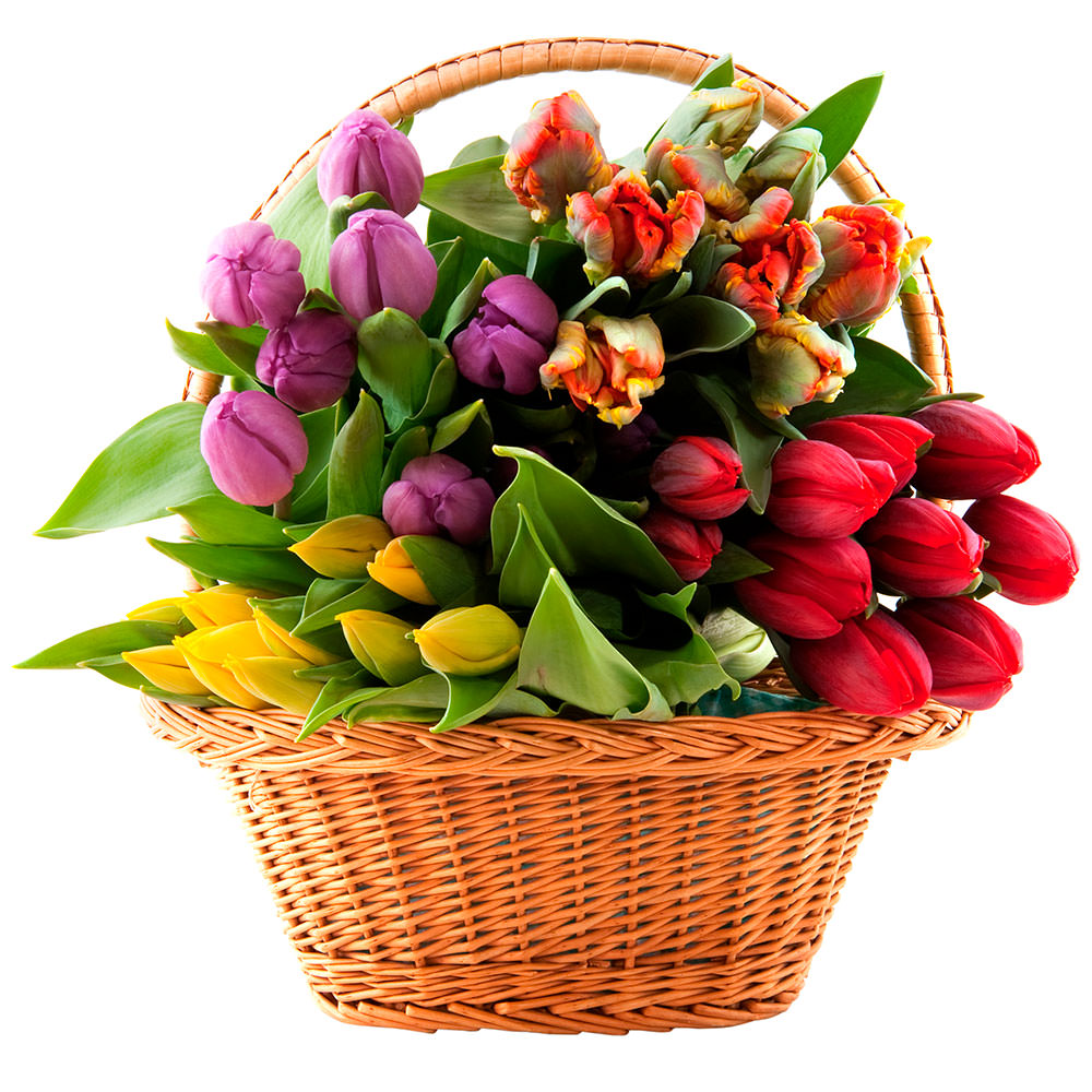 Цветы в корзинке «Микс тюльпанов» с доставкой по г Березовский (Свердловская обл): вы можете заказать букет в супермаркете цветов «Флормания» по цене от 3890 руб.